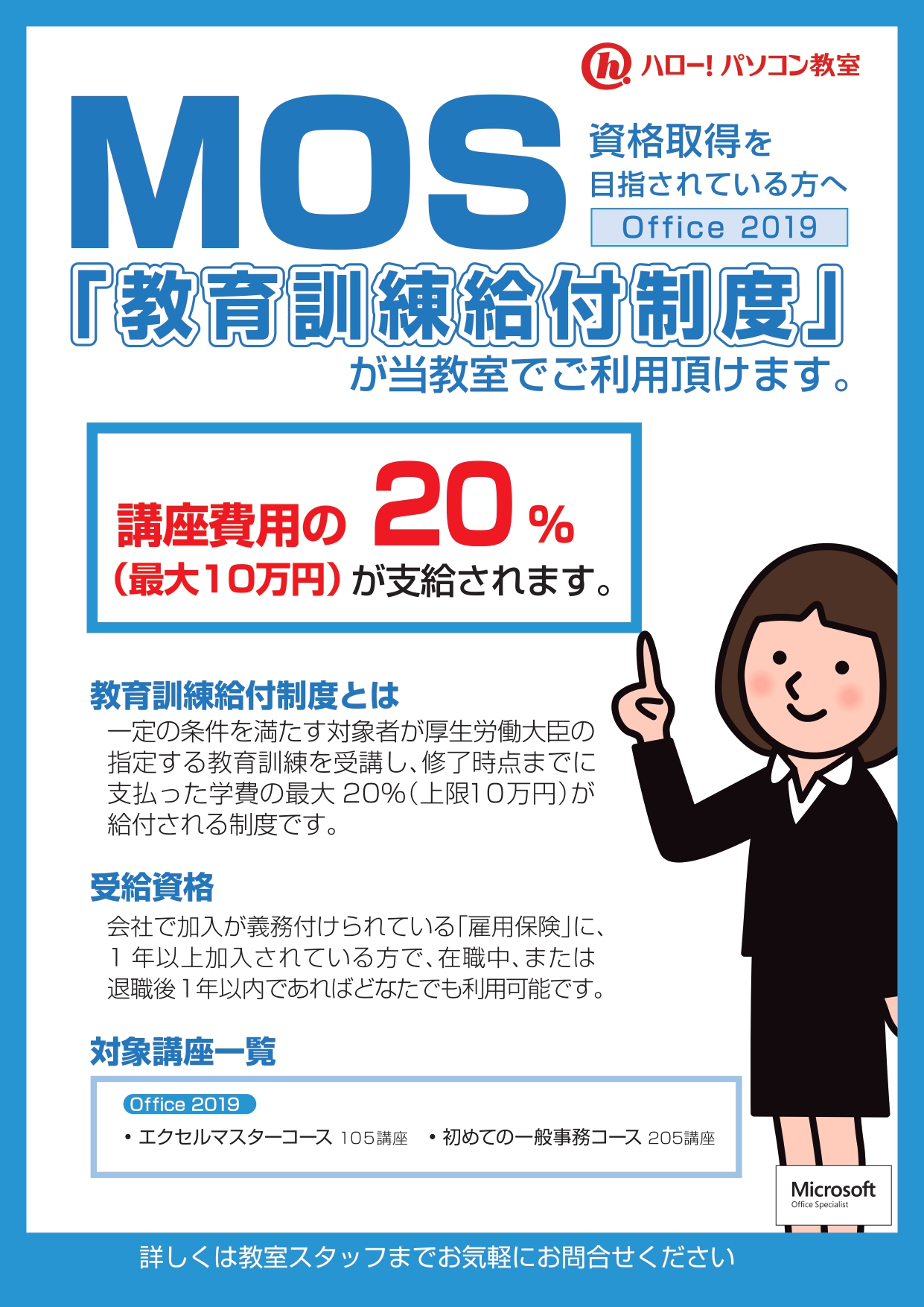 ①就職転職に有利な指定講座コースを受講すると20%の補助が支給