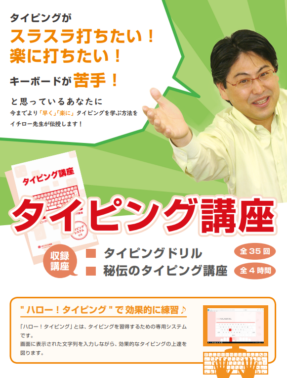 タイピングは単なる入力スキルではなく、ビジネスマンの武器ともいえる重要スキルです。ハローパソコン教室のタイピング講座では、初心者からでも無理なく習得できるカリキュラムをご用意。ぜひこの機会に、仕事効率を飛躍的に高めるタイピングスキルを身につけてみませんか?
